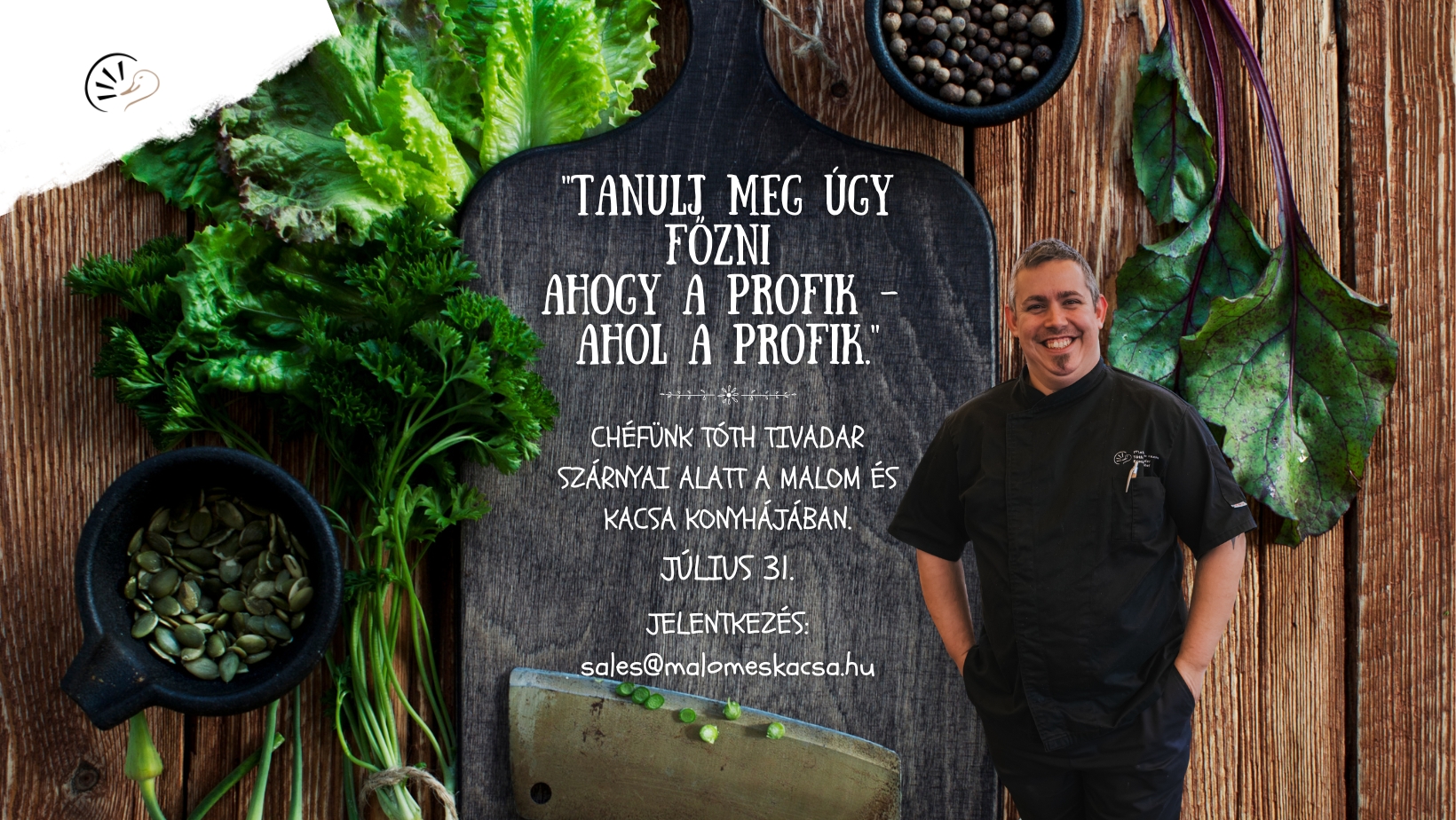 Vonz téged a konyha világa? Szívesen tanulnál főzni egy profi séftől? Ha a válaszod IGEN, tarts velünk a Július 31-én megrendezésre kerülő tini főzőtanfolyamunkon és lesd el séfünk, Tóth Tivadar fortélyait! Tölts el egy szuper délutánt Tatán, a Malom és Kacsa konyháján tanulással, rengeteg nevetéssel és finom falatokkal! Nálunk ugyanis tényleg megeheted, amit főztél – fogyasszátok el együtt a közös munka gyümölcsét, 3 fogásban!